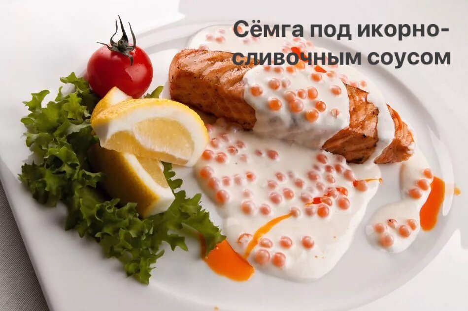 Семга с икорным соусом простое и в тоже время изысканное блюдо с незабываемым вкусом! Благородный соус выгодно подчеркивает достоинства нежной рыбки. 🔪 Приступаем к приготовлению: 🛒 Ингредиенты Для запекания рыбы: - филе семги/форели с кожей 400 г - сок лимона 1 ст.л. - оливковое масло 1-2 ст.л. - соль - свежемолотый перец Для икорно-сливочного соуса: - сливки (30% жирности) 200-300 мл - белое сухое вино 50 мл - цедра 1 лимона - сыр - 50 г - красная икра 1-2 ст.л. (с горкой) - зелень укропа (по желанию) 1 веточка (только листья, без стеблей) - свежемолотый перец 👩🏻🍳 Пошаговый рецепт Рыба: 1. Рыбное филе вымыть и обсушить бумажными полотенцами. 2. Филе сбрызнуть соком лимона, немного посолить, поперчить и смазать оливковым маслом. 3. Выложить семгу в форму для запекания. 4. Запекать в духовке около 20 минут при температуре 180°C. Икорный соус: 1. В сковороду влить белое сухое вино и нагревать, пока вино не выпарится наполовину. 2. Влить сливки, перемешать и варить соус на м