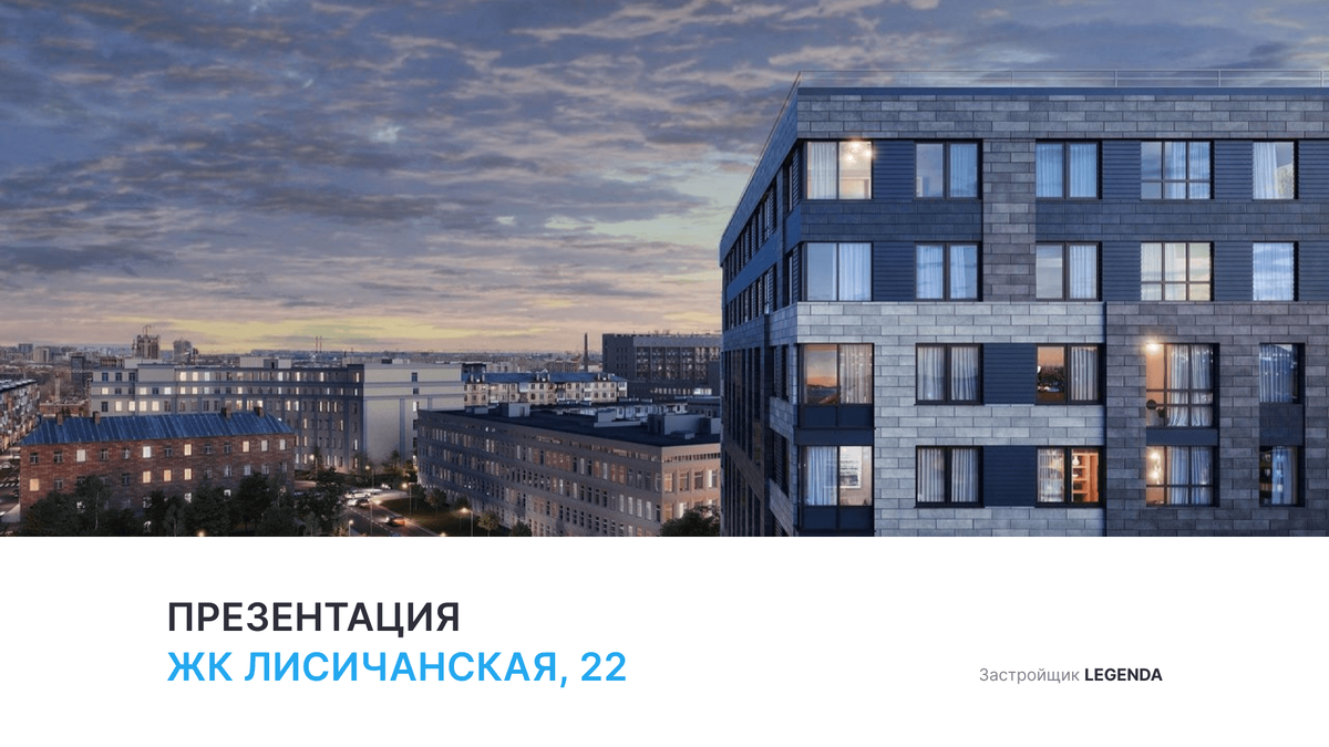 Добро пожаловать, дорогие друзья! Для ознакомления с ЖК «Лисичанская, 22» Вашему вниманию представляется краткий обзор ► ЖК Лисичанская, 22 — это новый жилой комплекс бизнес-класса в Приморском районе Северной столицы. Современная архитектура и инновационные инженерные решения делают ЖК Лисичанская, 22 идеальным местом для жизни молодых и амбициозных жителей мегаполиса. Застройщиком проекта выступает компания «LEGENDA Intelligent Development». ► Более подробно Вы можете ознакомиться по ссылке ► Приобрести квартиру в этом ЖК или получить консультацию — https://lisichanskaya-22.novostroy-spb.com/