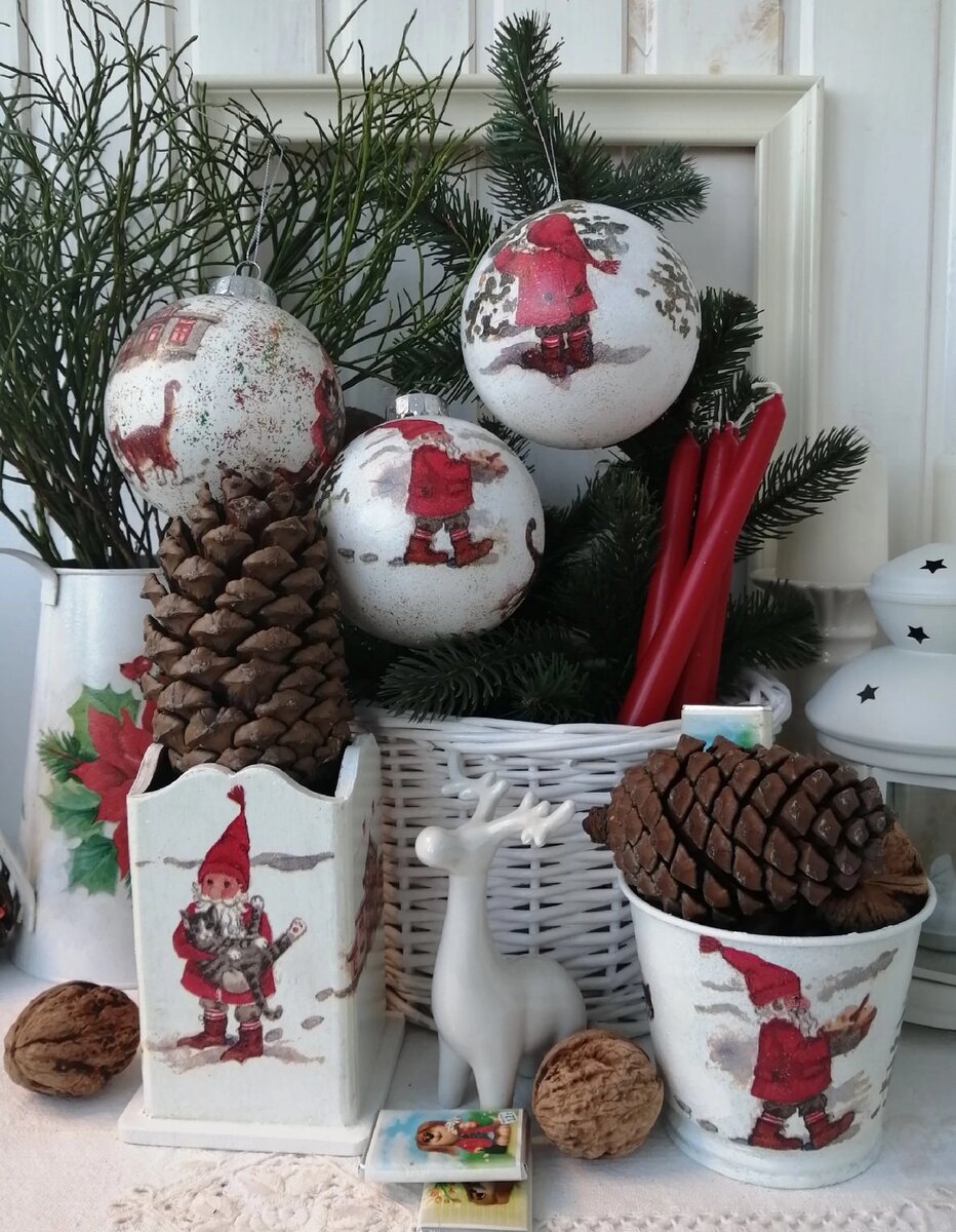 Рождественские гномики -это персонажи скандинавской рождественской традиции ,помощники Санта-Клауса.Они живут с ним на Северном Полюсе и делают игрушки, которые он дарит детям. Этот факт меня особенно порадовал,т.к в последние годы мне очень нравится делать рукотворные игрушки на елочку!