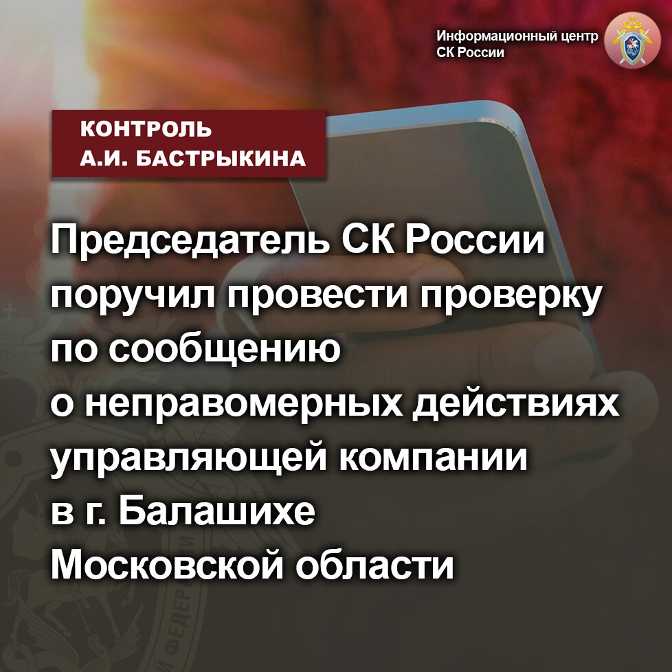 Председатель СК России поручил провести проверку по сообщению о неправомерных действиях управляющей компании в г. Балашихе Московской области