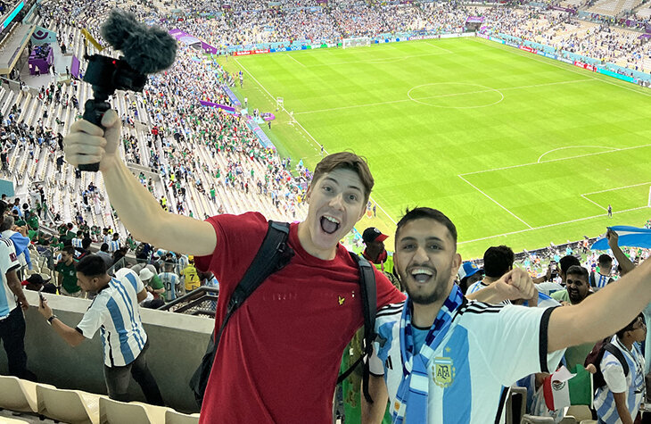 В Катар он приехал без билетов на матчи, жил в фанатской деревне, ходил на игры бесплатно и снимал это на видео для канала Фут Тур Рама.