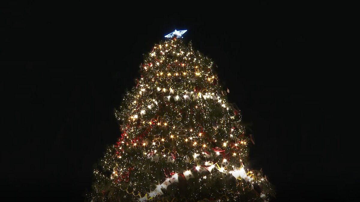Высота дерева составила 23 метра. Фото: 78.ru Вечером 20 декабря на Дворцовой площади зажгли новогоднюю ёлку. Зелёная красавица засияла десятками разноцветных огней. Ёлку по традиции зажёг Дед Мороз и Снегурочка. За волшебством наблюдали жители и гости Петербурга. Главное украшение города готовили к встрече с петербуржцами целых две недели. Видео: 78.ru Главная новогодняя ёлка прибыла в Петербург в ночь на 7 декабря. Её срубили в лесничестве под Приозерском. Высота дерева составила 23 метра. Доставка, установка и украшение ёлки обошлось городу в 6,9 млн рублей — на 1,5 млн больше, чем годом ранее. Ранее 78.ru писал, что на Дворцовой площади открыли катальную горку.