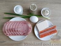 Пошаговый фото рецепт .Рулетики из ветчины с сыром, крабовыми палочками и яйцом
