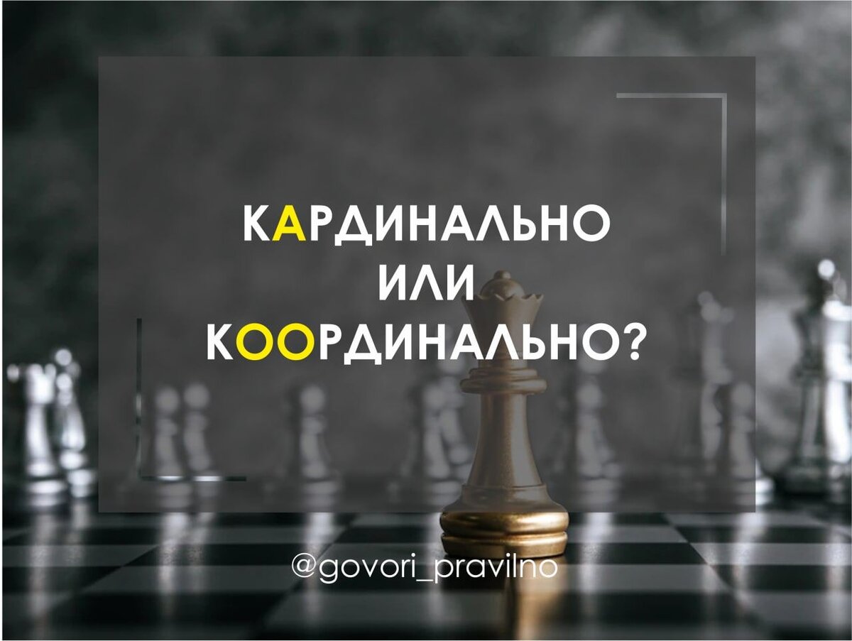Из-за неправильной буквы обычное слово легко превращается в монстра! Согласно этимологическому словарю русского языка слово «кардинально» образовано от латинского cardinālis - «главный», «основной». Как видите, буква «а» в современном слове сохранилась. И единственно верное написание слова - КАРДИНАЛЬНО 👈🏻 В русском языке слово «кардинально» может иметь такие синонимы как «существенно», «радикально», «принципиально» и другие, смысл не поменяется. ▪️ После развода она решилась кардинально поменять стиль ▪️ Это открытие способно кардинально изменить ситуацию ▪️ Кардинальные меры можно задействовать только в самом крайнем случае Слово не имеет ничего общего с координатами! Слово «координаты» также происходит от латинского coordinatus, только значение у него совсем другое - «согласованный, упорядоченный». Слова «координально» не существует! Говори правильно🪆