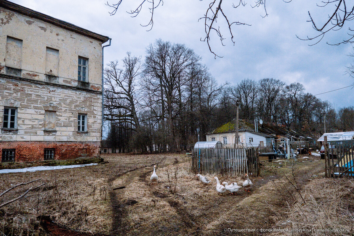 На берегу большого пруда стоит дворец, вокруг бегают гуси, тут же рядом свалены дрова, а в покосившемся домике горит свет. А если пройти по гравийной дороге чуть дальше, то среди деревьев начинают угадываться очертания крепостных стен. Настоящих, с башенками. И в какой-то момент даже может показаться, что вы попали в "европейское средневековье". Правда, выглядит всё это не самым лучшим образом: штукатурка давно облупилась, кое-где обвалилась крыша, стёкла в окнах - через одно. А когда попадаешь на территорию, которая скрывается за крепостными стенами, недоумение только усиливается. Но так было не всегда. Когда-то небольшое село Алексино в Смоленской области процветало. Тут был огромный дворец (сейчас стоит заброшенный), пейзажный парк, флигели для прислуги, плотина, большое подсобное хозяйство, скотный двор. И вот эта крепость, которую ещё называли Андреевской. В таком необычном стиле владелец усадьбы обустроил конный двор, назвав его в честь своего сына. В советское время имен