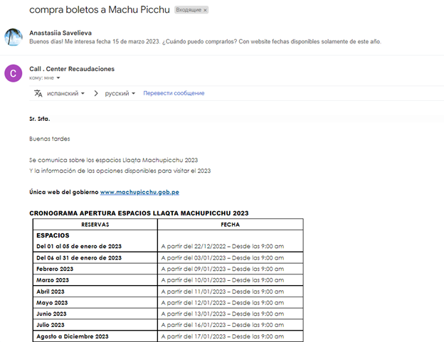 Теперь, когда авиабилеты оплачены, пора забронировать проживание и спланировать программу путешествия. Поехать спонтанно не получится, так как посещение Мачу-Пикчу ограниченно и билеты нужно приобретать заранее, обычно не менее чем за две недели. В высокий сезон с мая по август даже за несколько месяцев. Итак, авиабилеты и отель мы забронировали в конце ноября, а вот билеты на поезд и в Мачу Пикчу купить сразу не удалось. Дело в том, что продажа билетов на Мачу-Пикчу на март 2023 года еще не открыта. Обращение в центр по продаже билетов и – у нас есть расписание старта продаж. Билеты на март начнут продавать 10го января. Так, что ждем с нетерпением, соответственно билеты на поезд рекомендую брать после покупки билетов в Мачу-Пикчу. Мало ли придется сместить их на 1 – 2 дня. Мы решили поехать в Агуас Кальентес вечером накануне, чтобы дети могли отдохнуть в отеле и не пришлось поднимать их в 4 утра на самый ранний поезд из Куско. Так что статья про резервацию билетов в Мачу-Пикчу будет ч