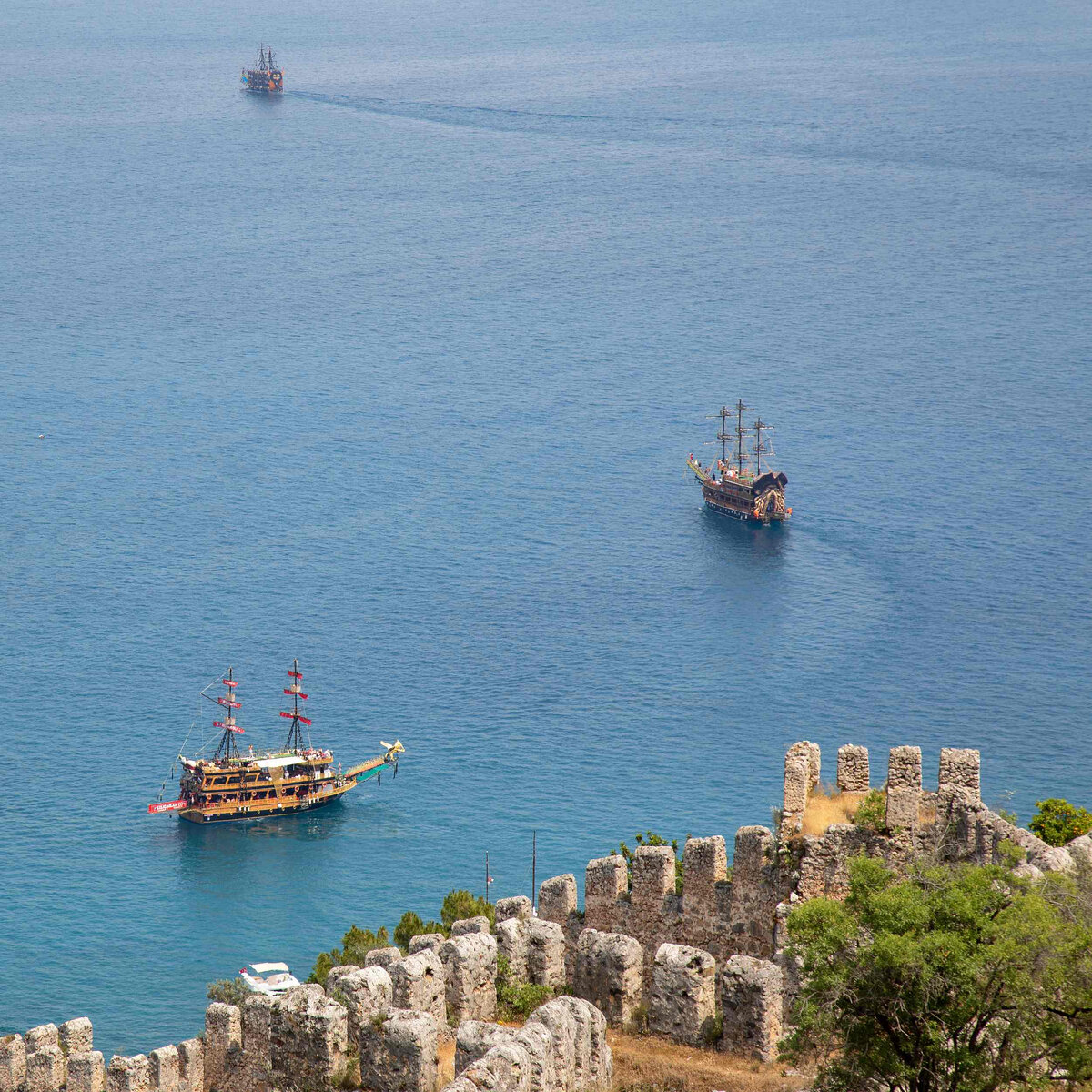 Вместе с ним, мы отправились ближе к «воротам», туда, где возле одной из бухт всегда суетились яхты и лодки с туристами. В момент, когда одна из яхт с яркой рекламой «15-й век» на борту вошла в проход – последовали вслед за ней. На какие-то несколько секунд мы потеряли её из виду. Прошли между скал – снова в открытое море. Яхты нигде не было.