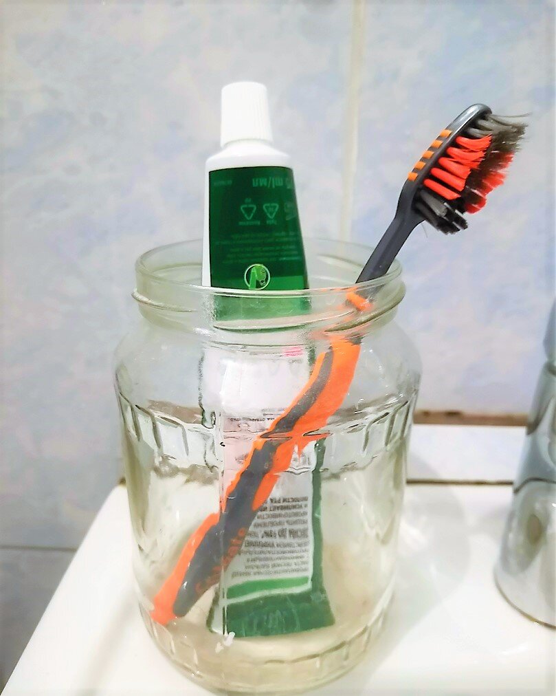 Но начинаю я обычно не с этого. И даже не с зубов. Начинаю, обычно, с трёхкратного обычного полоскания рта тёплой водой, чтобы смыть поверхностные бактерии, и "разогреть рабочую поверхность".