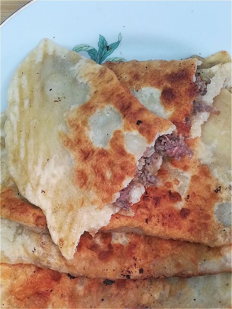 Чебуреки с куриными желудками, но точно сразу не поймет никто, пока сама не скажешь какая это начинка. Тесто для чебуреков можно зависти по любому рецепту. Последние время мне нравиться заварное тесто. Получается вкусно, много пузырьков и очень хрустящие. В миску наливаю триста пятьдесят миллилитров очень горячей воды, всыпаю чайную ложку соли и добавляю столовую ложку растительного масла. Добавляю около семьсот грамм просеянной пшеничной муки. Сначала все смешиваю деревянной лопаткой, а затем вымешиваю руками. Муку всыпаю частями. Сегодня хочется побольше поговорить о начинке. С желудков снимаю внутренний жир, который после перетапливаю, вот здесь видео как перетапливаю. Остатки жира не снимаю. Желудки промываю и с жиром перекручиваю на мясорубки с мелкой решеткой. Чтобы чебуреки получились сочные, есть маленький секрет. А секрет такой, репчатый лук надо брать один к одному к мясу, к желудкам. И обязательно, если это мясо половина порции репчатого лука надо смолоть на мясорубке, поло