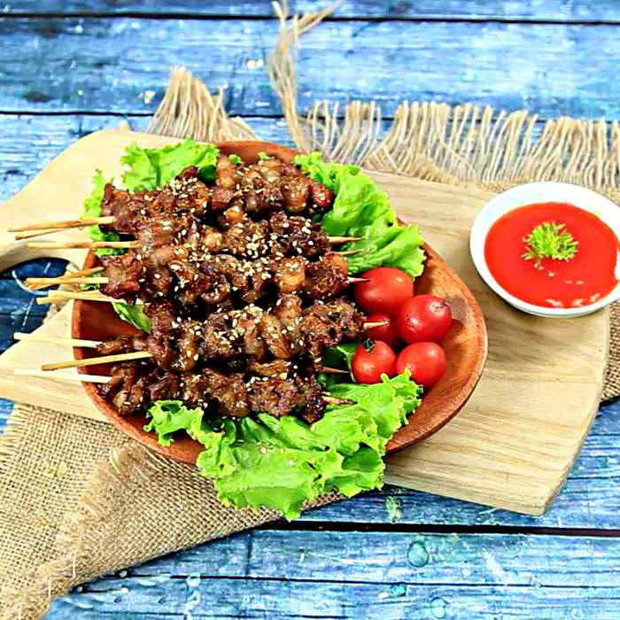 Готовые ароматные шашлыки вынимаем из духовки и спешим к столу. Подавать можно на листьях свежего салата, украсив зеленью и овощами, а также немного посыпав семенами кунжута. Приготовленный по этому рецепту свиной шашлык в духовке получается мягким и сочным, а вкус очень оригинальным, насыщенным, который обязательно вам понравится.