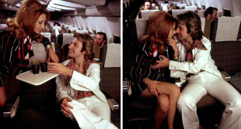 Пассажирские перелеты в те годы не были похожи на современные: блюда подавались на настоящих столах со скатертями и фарфором, людям было разрешено передвигаться по салону, да и алкогольные напитки лились рекой. Тогда пассажирами в основном были молодые бизнесмены, и рекламные кампании были направлены на то, чтобы привлечь их на борт.