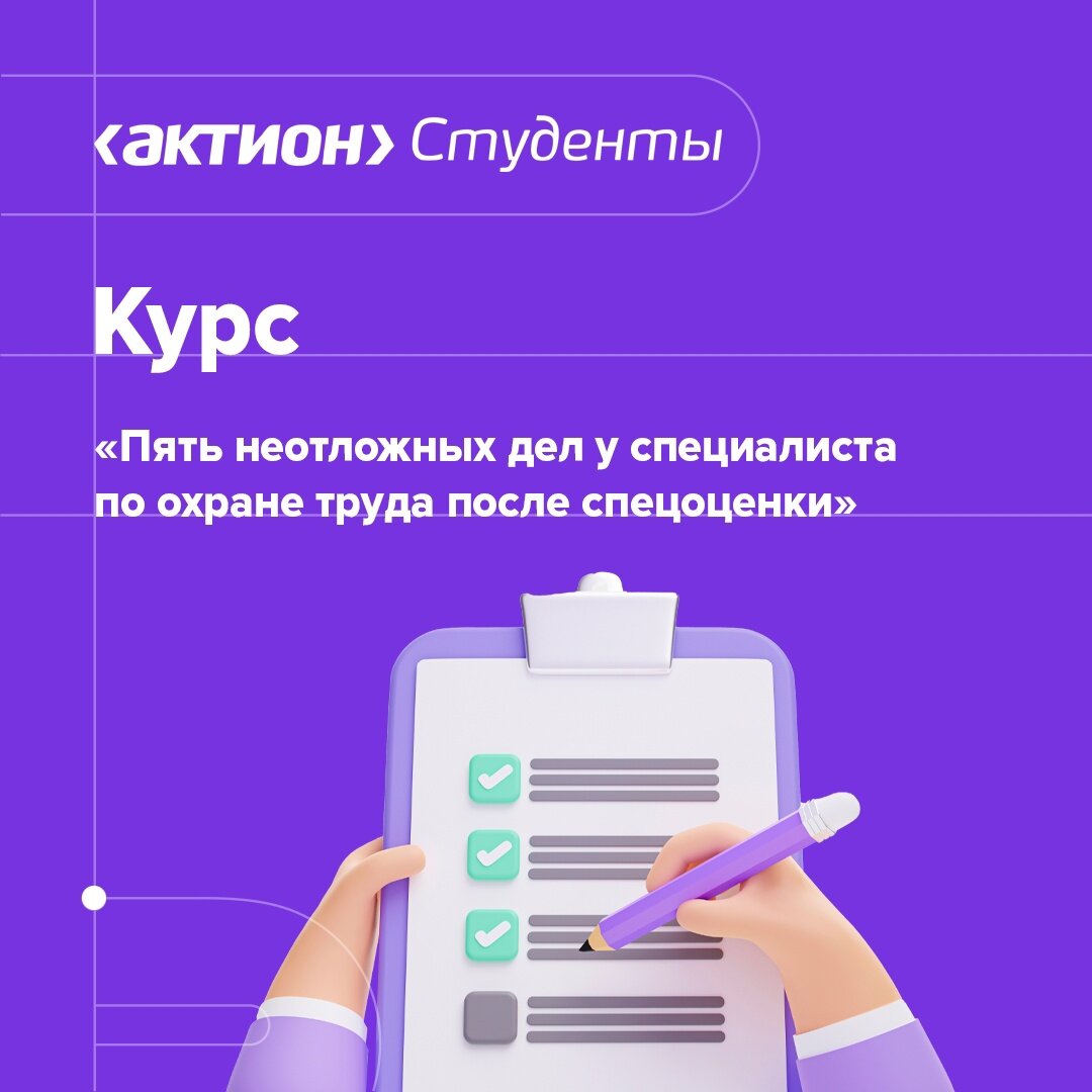 Завершаем вторник еще одной полезностью – бесплатным курсом «Пять неотложных дел у специалиста по охране труда после спецоценки».