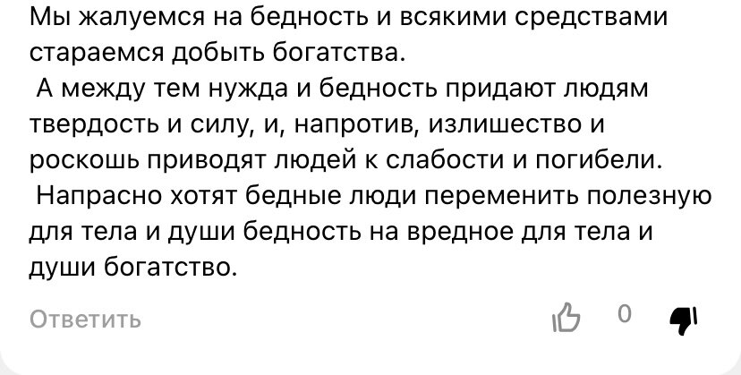 Меркантильная я все-таки. Как и большинство из вас, дорогие подписчицы. Shame on you. Сегодня хочу объединить денежную среду с рубрикой «нам пишут»: Даже не знаю, с какого вопроса начать. Дайте подумать. Невозможность получить платную медицинскую помощь (потому что как работает условно бесплатная, мы все знаем) — это вредно для тела? А низкосортная дешевая еда что с телом делает? А просыпаться ночью в холодном поту с мыслями о том, что *лять платить за ЖКХ, это на сколько полезно для души и тела по шкале от 1 до 10? Полезна ли бедность для души и тела пенсионеров? Российских пенсионеров из обычных российских городов. Полезно ли для детей жракать макарошки за 25 рублей и самые дешевые сосиски, не ходить на всякие кружки по интересам, спорт? А вот мы и подошли к главному вопросу. Человек, который так размышляет, бездетный мужик? О, что-то мне подсказывает, что ответ очевиден. Еще с большой вероятностью это может быть разведенный мужик, у которого есть дети. В смысле бывшие дети. И эт