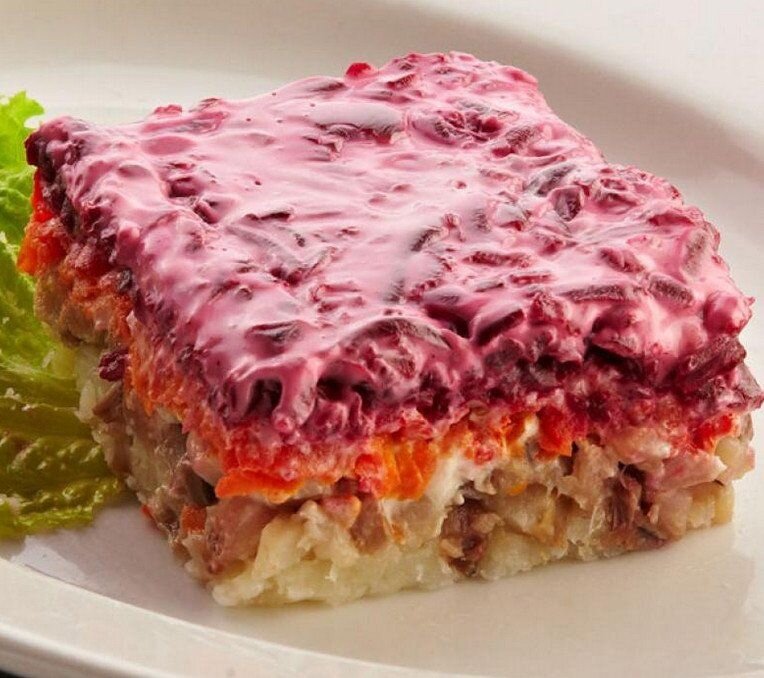 📖 Ингредиенты: - Сельдь (солёная) 1 - 2 шт - Лук репчатый 100 гр - Морковь 300 гр - Свекла 300 гр - Майонез 200 гр - Картофель 200 гр - Соль (по вкусу) - Чёрный перец (по вкусу) - Петрушка (для украшения) - Дольки лимона (для украшения) 🧑🏻🍳 Приготовление: 1) Картофель , морковь и свеклу отварить до готовности. 2) Овощи остудить, почистить. 3) Лук мелко нарезать. 4) Сельдь порезать на мелкие кусочки, очистить от косточек. 5) Свеклу , картошку , морковь потереть на мелкой тёрке. 6) На дно плоского блюда выложить картофель, разровнять, смазать майонезом. 7) На картофель выложить селедку, смазать майонезом. 8) На селедку выложить лук. 9) На лук выложить морковь, смазать майонезом. 10) Выложить свеклу , разровнять. 11) Украшаем майонезом , петрушкой и дольками лимона.