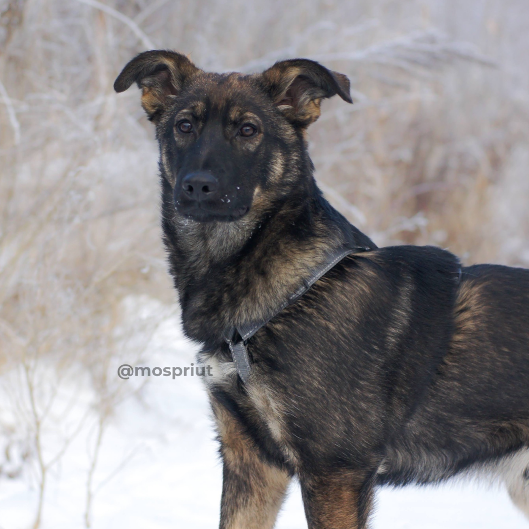 Мальчик еще щенячьего возраста (6 месяцев). Умеет ходить на поводке. Не откажется побегать на перегонки с друзьями по вольеру. Не поддерживает драки и возмущения со стороны сородичей, совсем не конфликтное создание 👍