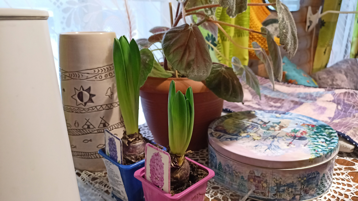 Продукты пришлось оставить в Мальцево, откуда добрый Николай Николаевич Грошихин доставил всё прямо к дому родителей на следующий день, а гиацинты так и прижились у меня, теперь уже, видимо, буду вручать маме к празднику расцветшие.