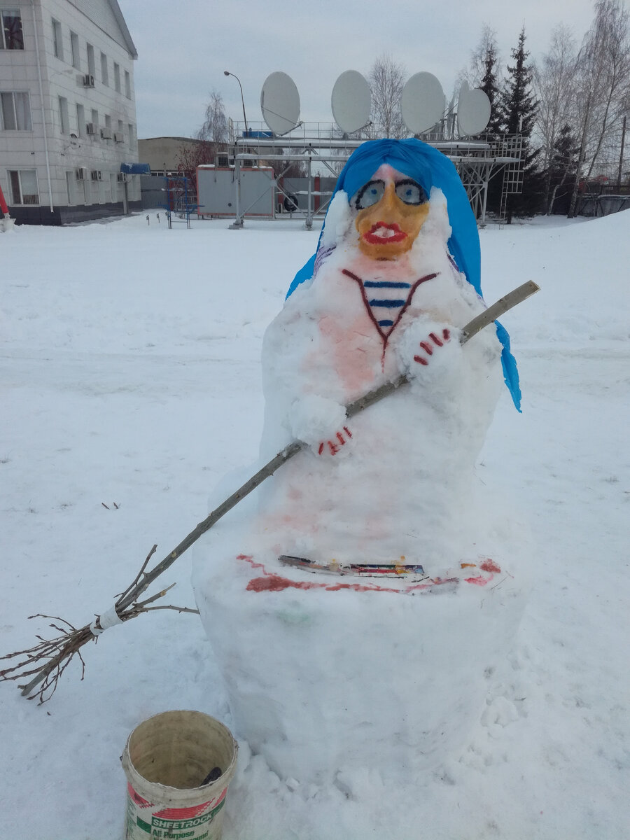 - Надеюсь, креативно получилось. Заранее не планировалось, все спонтанно. Вместо головного убора, случайно был взят мусорный пакет голубого цвета, начал рисовать глаза и осталась голубая краска на кисте... случайно провел линию и получилась тельняшка)))). Отошел посмотрел.... БА, да это же десантная Баба Яга... ну что тут скажешь: всех с наступающим и ЗА ВДВ.
