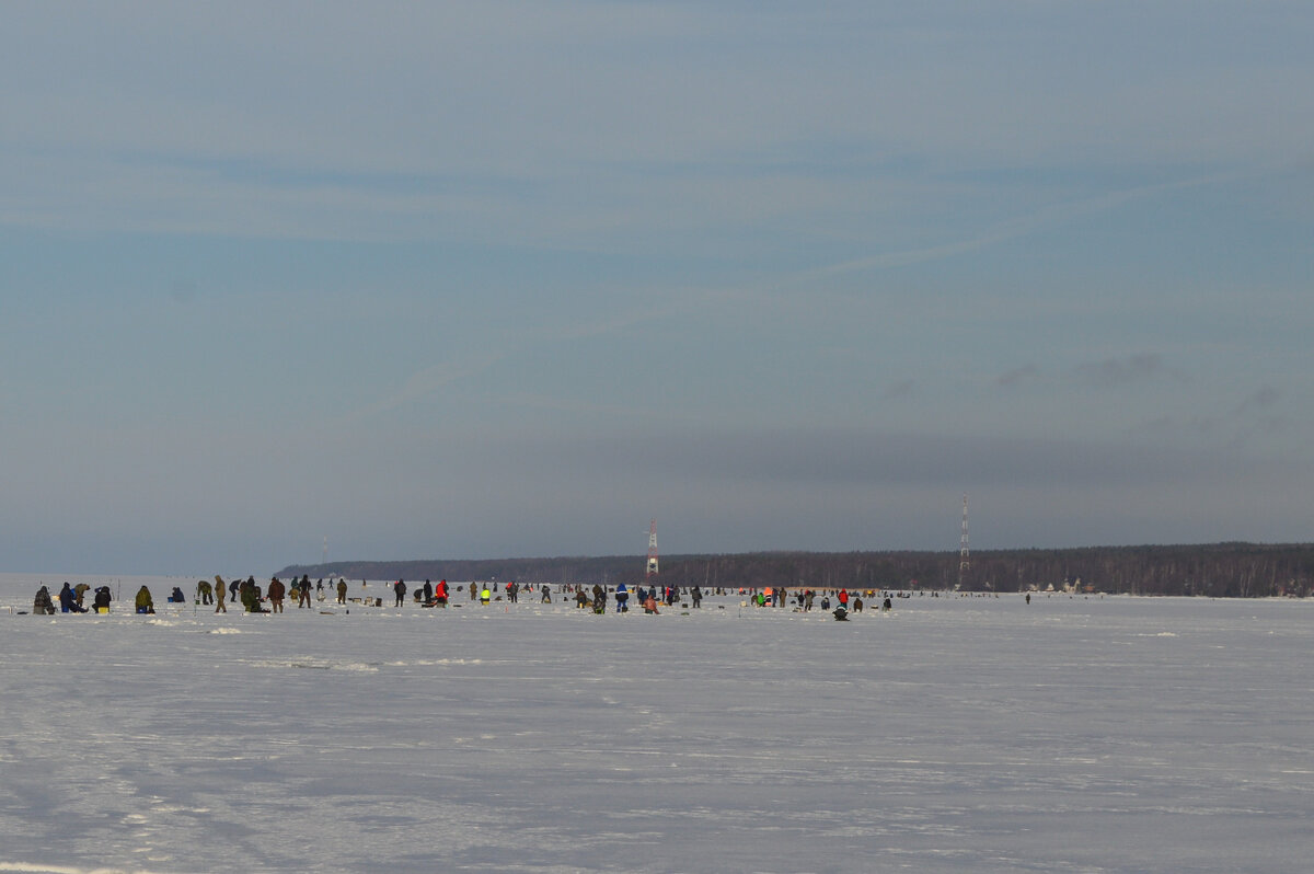 Корюшиная рыбалка гораздо более предсказуемая и простая в части поиска рыбы, чем например поиск окуня или плотвы. Места массового лова известны, и наглядны. Если не говорить о таких вариантах, как "уехать от толпы на снегоходе за много километров от берега, на секретную точку", то места концентрации корюшки находятся по большому количеству рыбаков. Это массовая рыбалка.