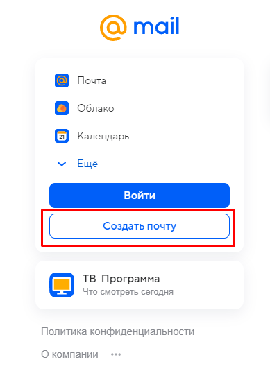 В начале нам нужно создать почту. Сделать это можно на mail.ru
