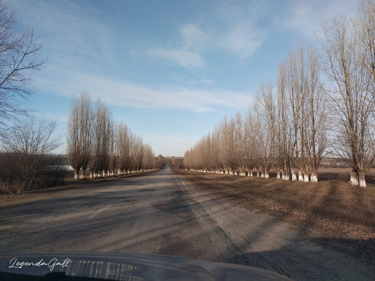 Очень красивая аллея из пирамидальных тополей ведет от трассы к селу