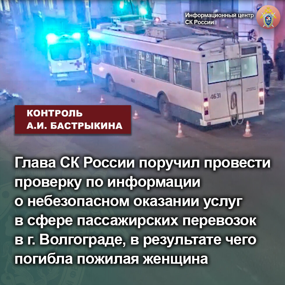 Глава СК России поручил провести проверку по информации о небезопасном оказании услуг в сфере пассажирских перевозок в г. Волгограде, в результате чего погибла пожилая женщина
