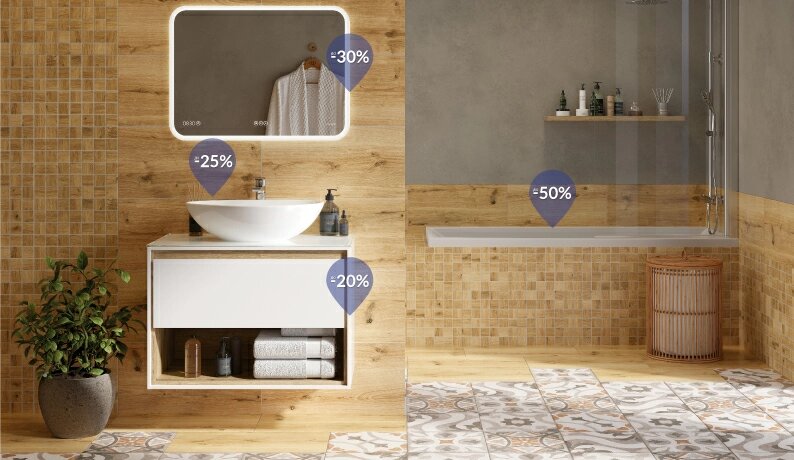 Cersanit — единственный бренд на российском рынке, который позволяет отделать ванную комнату под ключ. Вы экономите время и средства на поиск подходящих технически и эстетически материалов. Выверенный дизайн позволяет сочетать всю продукцию бренда и не переживать о том, что стилистически что-то не подойдёт. Просто любуйтесь конечным результатом. Чтобы ваши покупки были ещё более выгодными, мы собрали в этой статье ссылки на скидки и интересные акции на разных интернет-площадках. Делимся находками! До –75% на смесители и керамическую плитку вы найдёте на OZON. Здесь же –60% на инсталляции и душевые гарнитуры. До –60% маркетплейс предлагает на мебель и зеркала бренда. «Озон» предлагает доставку в пункт выдачи и курьерской службой до дверей квартиры. Это значит, что начать ремонт вы сможете без глобальных поисков подходящих товаров. Скидку на смесители, в том числе и чёрные матовые, вы найдете на OBI. Экран для ванн, раковины Moduo и некоторые модели унитазов здесь тоже можно купить выгод