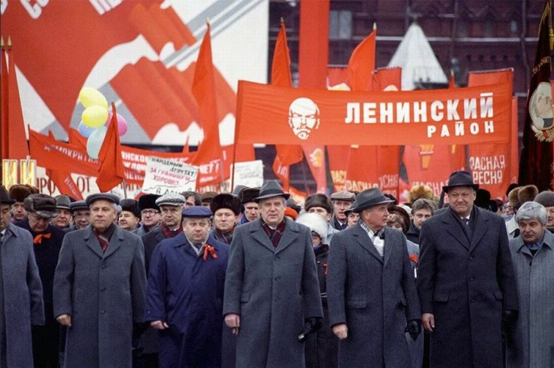 Демонстрация по случаю 73-й годовщины Октябрьской революции. Москва, 7 ноября 1990 года. Вот они, будущие могильщики СССР: Рыжков, Горбачёв, Ельцин, Попов... Иных уж нет, а те далече... Но Рыжков и Попов — живы и для своего возраста, видимо, даже здоровы