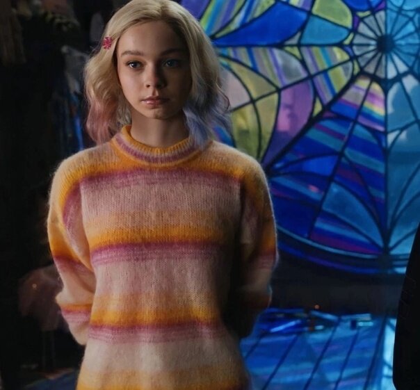 Ну и финал - это, конечно, милейшие вязаные образы соседки Уэнсдэй по комнате! В сериале не показали, как она вяжет, но держу пари, предполагается, что эти свитеры (и жилет в клеточку для Уэнсдэй) она вязала сама. Какой вам приглянулся больше?