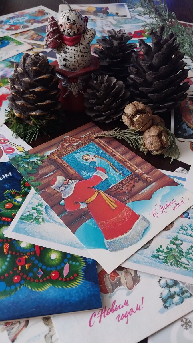 С каждым днём приближается всё ближе и ближе мой любимый праздник Новый Год. Во времена моего детства в это время со всех частей света Советского Союза к нам летели поздравительные открытки. Как же было радостно доставать их из почтового ящика, мы их расставляли потом на полке, а после праздника убирали и бережно хранили. Сегодня я хочу поделится новогодними открытками, которые получала непосредственно я. Какие же приятные чувства вызывают они сейчас во мне. Открытка 1970 года выпуска, художник Ю. Лукьянов, типография «Красный пролетарий» Москва, цена с конвертом 15 копеек. Эта открытка старше меня, но получила я её в подарок от подружки в 1985 году. Открытка 1979 года выпуска, художник Т. Игнатьева, издательство «Изобразительное искусство» Москва, цена 3 копейки, тираж 900 000. Открытку прислал мой дядя из Читы. Открытка 1978 года выпуска, художник И. Манилова, издательство «Изобразительное искусство» Москва, цена 3 копейки, тираж 2 000 000. Открытка 1979 года выпуска, художник В. Чет