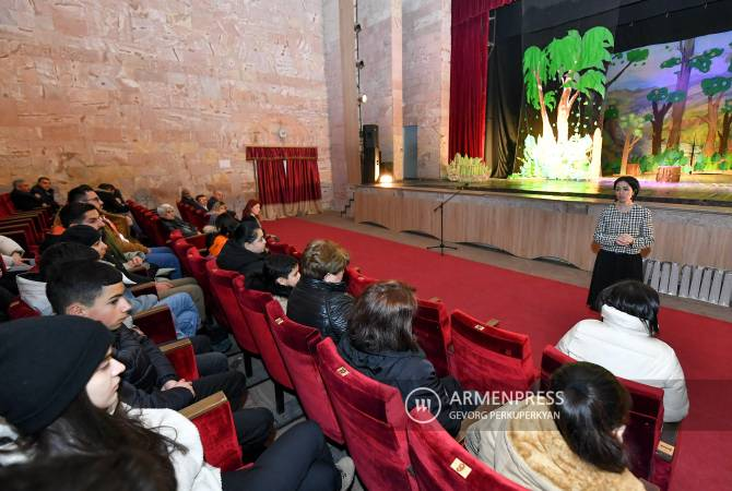 Министр образования, науки, культуры и спорта РА Жанна Андреасян 21 декабря посетила Сюникскую область РА, где в Горисском государственном драматическом театре встретилась с арцахцами школьного возраста, оставшимися в Армении в связи с закрытием Азербайджаном Лачинского коридора.