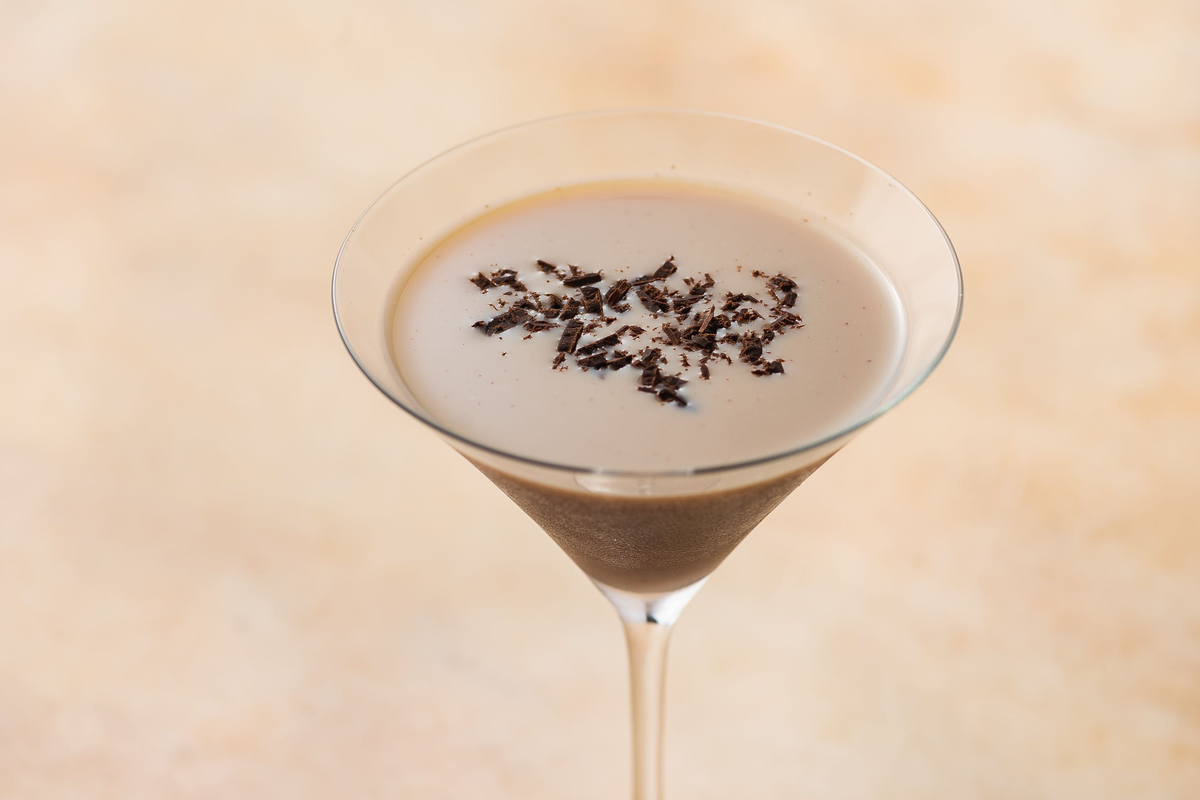 Сладкий коктейль «Шоколатини» на основе ликера и водки можно подавать в качестве десертного напитка с мини-бисквитами, печеньем или какими-нибудь легкими шоколадными десертами.