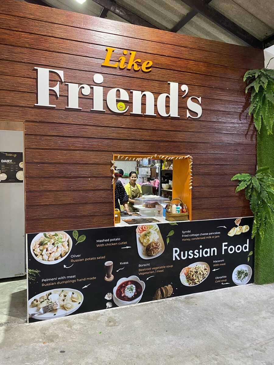 Оказываясь на далеком острове, где-нибудь в Сиамском заливе, у русского человека просыпается чувство тоски по своей любимой еде, которую он привык употреблять дома. Чтобы утолить это чувство тоски, даже тут, на далеком острове, открываются русские кафешки с любимой, традиционной едой для русских. Я прихожу к выводу, что для того чтобы определить, какая же еда для русских самая любимая, достаточно посмотреть меню из кафешки на этом далеком острове. Ведь логично, что русский турист должен в меню увидеть обязательно своё любимое блюдо, в противном случае он продолжит употреблять местную кухню. На небольшом острове Панган (Koh Phangan), в районе ночного рынка, можно найти кафешку для русских. Я предполагаю, что это не единственное кафе с Russian Food, но я встречал пока что только это заведение. Я даже услышал, как проходящая мимо иностранка воскликнула: «Ooo, Russian Food». Правда её любопытство, дальше обычного интереса, не зашло. А вот русские частенько подходили к этому окошку. Итак, в