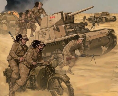 Берсальеры — далеко не самые понятные войска итальянской армии. В одном случае их относят к элитным частям для действий в горах, другие считают, что это велосипедные части, третьи — что это мотоциклисты. И правы почти все, но и не правы тоже. Изначально, берсальеры созданы в начале XIX века в Сардинии, как лёгкие стрелковые подразделения для действий, в первую очередь, в лесной и горной местности. Название происходит от итальянского слова berságlio — «мишень», то есть можно переводить на русский как «стрелки». Мы же переводим английские части rifle как стрелковые, так что прецедент есть. В конце века берсальеры стали первыми велосипедными частями. В итальянской армии точно, а вот в мире не знаю. Именно для берсальеров были созданы складные велосипеды ещё аж в 1911 году. К началу Второй Мировой войны берсальеры продолжали оставаться в основном велосипедными (в нашей терминологии — самокатными) частями, но стали появляться моторизованные и мотоциклетные. Наиболее распространённый вариант