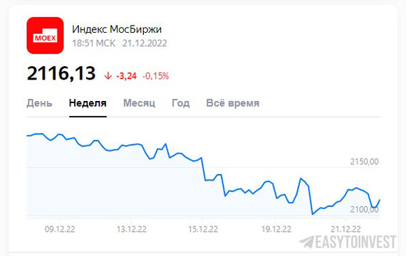 Акции лидера вашего недавнего голосования - Московской биржи активно растут на 📈+5,2%. Председатель правления торговой площадки Юрий Денисов сообщил, что суммарный объем торгов на рынках Московской биржи с начала года и по состоянию к 16 декабря составил 1 квадриллион 9 трлн рублей. Также компания планирует в 2023г запустить торги дирхамом ОАЭ, азербайджанским манатом и египетским фунтом.