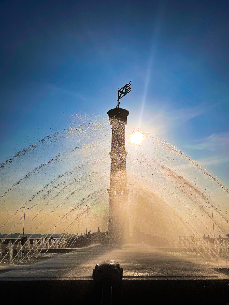 Колонна-маяк с флюгером в парке 300-летия Санкт-Петербурга