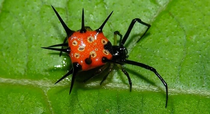 Phoroncidia thwaitesi (Шри-Ланка) Этот паучонок может выглядеть так будто он пришёл карать восставшего из ада цепными крюками, но на самом деле это безобиднейшее существо чуть больше спичечной головки, а его так тяжело вооурожённая жопка — всего лишь орудие самозащиты и выживания)