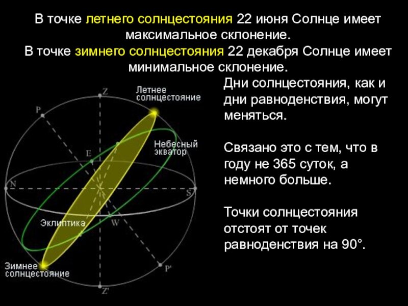 Астрономически это можно пояснить так: в день зимнего нисхождения Солнца в северном полушарии Земли оно оказывается в самой низкой точке на небосводе относительно небесного экватора. В дни зимнего и летнего благоденствия Земля наиболее удалена от Солнца, это связано с тем, что орбита Земли немного вытянута — имеет форму эллипса, и в эти дни Земля находится в дальней точке орбиты.