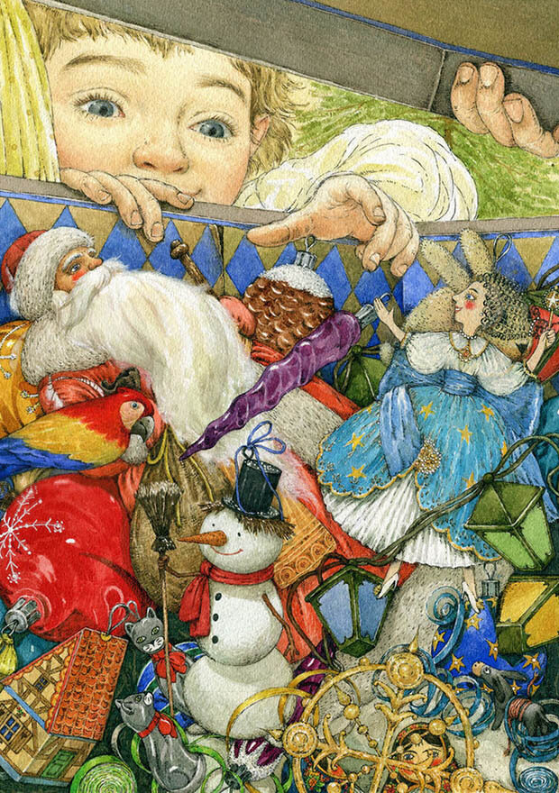В детстве мы оживляем неживое. Смотрим на стекло и вату, пластмассу и бумагу с блестками, а представляем существо, которое дышит, говорит, радуется, грустит. В общем, живет. Предновогоднее время располагает к фантазиям. Елочные игрушки сами по себе — сказка. Писатели это чувствуют, как и дети. Например, в сказочных повестях Елены Ракитиной «Приключения новогодних игрушек» и «Страна новогодних игрушек» объединилась фантазия талантливого писателя, который внимательно наблюдает и точно выражает увиденное, и извечная фантазия ребенка, оживляющего неживое. Того, кто ходит вокруг елки, касается рукой игрушек — и фантазирует, представляет их живыми, чувствующими, думающими. «Приключения новогодних игрушек» — книга, в которой много историй. Каждая — об игрушке, ее судьбе, характере, о том, как она попала именно в этот дом, что пережила. Мне кажется очень важным, что они связаны с людьми, их теплыми ладонями, их памятью, радостью. Прекрасная Фея с пружинками-завитушками на голове, Пластилиновый