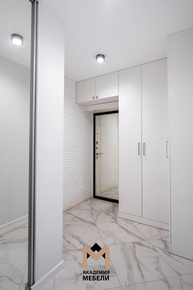 Установили мебель в прихожую на Поморской, 34/3. Прихожая – это важное пространство в нашем доме. Отсюда мы отправляемся по нашим многочисленным делам, и, возвращаясь домой, мы тоже первым делом попадаем в прихожую. Это пространство в нашем доме создаёт самое первое впечатление о нас – хозяевах этого дома. Именно этим обусловлен тщательный подход к обустройству этого важного уголка – прихожей. Тут должно быть максимально удобно и, при этом, максимально свободно. Если прихожая маленькая, то стоит расположить в ней только необходимые элементы. Прихожая будет выполнять те функции, которые вы на неё возложите. Если же её пространство позволяет, то можно расположить набор мебели для прихожей, как мы и поступили в нашем новом проекте. Комплект мебели состоит из двух замечательных систем хранения – шкафов: углового распашного, с прилегающими к нему антресолями, и шкафа-купе. В качестве основного материала при их изготовлении использован ЛДСП "Белый глянец". Белые глянцевые поверхности отличн
