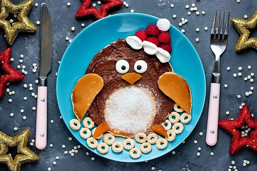Новогодний завтрак с блинами в виде пингвинов готовится быстро и заставляет сиять детские глазки. Ингредиенты ниже, в комментариях. Время приготовления: 35 мин. Пошаговый рецепт: Вкусный новогодний завтрак для детей: ШАГ 1: Смешайте пахту с яйцами, растительным маслом и растопленным сливочным маслом. ШАГ 2: Смешайте в миске разрыхлитель, муку, сахар и соль. Добавьте к жидкому тесту. ШАГ 3: Нагрейте немного сливочного масла в сковороде. ШАГ 4: Выпекайте блины из теста на среднем огне. ШАГ 5: Разложите блины в форме пингвина. Намажьте Нутеллой. Вырежьте пингвину крылья, клюв, лапки и наденьте их. Оформите шапку пингвина из малины и зефирок. ШАГ 6: Посыпьте брюшко пингвина сахарной пудрой. Поместите сахарные глазки, и новогодний завтрак с пингвинами готов. Приятного аппетита и прекрасного настроения! Друзья, ставьте лайк👍 и подписывайтесь на канал😍, чтобы не пропустить новые рецепты!