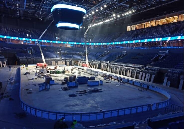 На новой новосибирской ледовой арене под потолком установили светодиодный медиакуб. В новом ЛДС в Новосибирске заканчивается пуско-наладка светового, звукового и концертного оборудования, в частности, под потолком смонтирован светодиодный медиакуб, сообщила пресс-служба правительства региона. Конструкция, произведенная китайской компании ABSEN, состоит из двух светящихся колец и четырёх светодиодных панелей размером 3х6 метров. «Основная арена всё больше приобретает очертания стадиона, в котором будут проводиться масштабные мероприятия – не только спортивные соревнования, но и крупные городские праздники и концерты. На данный момент, вслед за тренировочным кортом, идет монтаж современных амортизирующих хоккейных бортов», — рассказали в правительстве Новосибирской области. После установки бортов, на главной площадке нанесут разметку износоустойчивой канадской краской и зальют лёд. Ранее губернатор НСО Травников подтвердил сдачу ледовой арены в декабре 2022 года. Кроме того, Сиб.фм сообщ