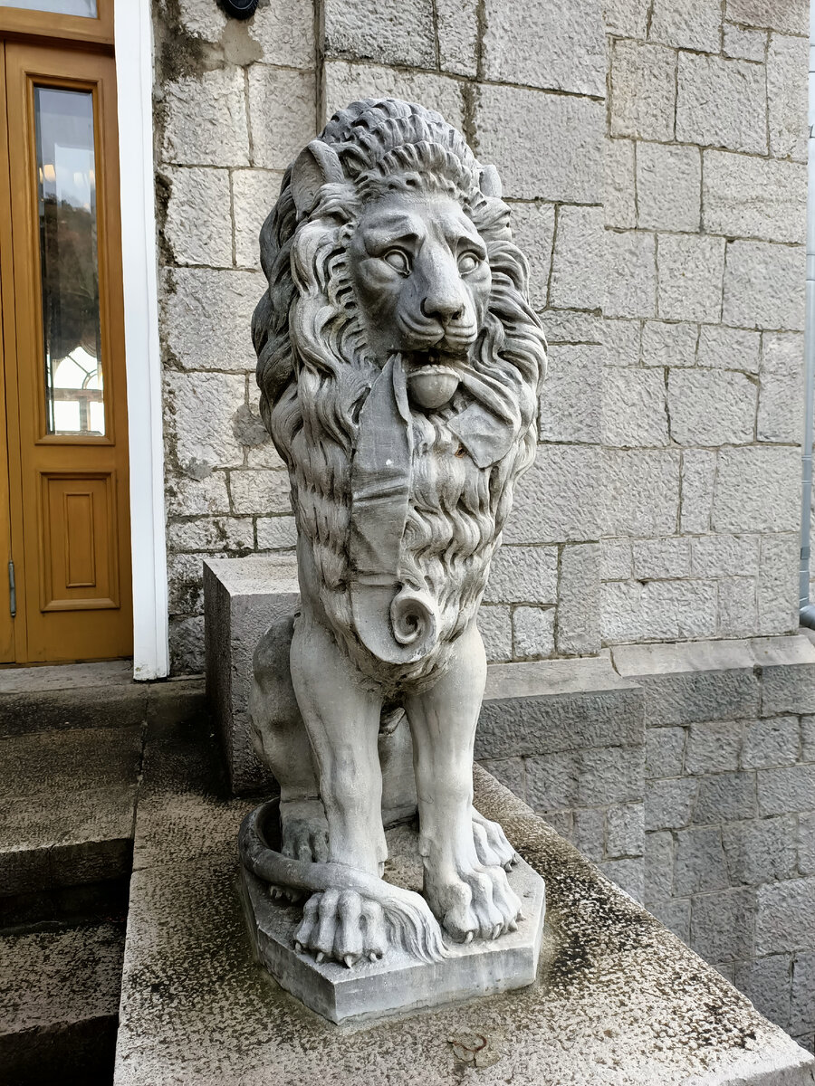 Сразу скажу, что всех львов найти на площади трудно. Они прячутся. Нет, 10 львов на виду, а вот два спрятались так, что только после подсказки их можно найти... Сразу обращаешь внимание на больших розовый у главного входа, но о них история отдельная. А начнём со львов, которых поставили около входа, которого во дворце во времена Феликса Феликсовича Юсупова не было. Два холёных льва с аккуратно причесанными гривами, чем-то напоминают Немцев, кстати в Германии их и изготовили. Львы у фонтана развалились и отдыхают от яркого солнышка. А вот этих львят очень сложно найти, они спрятались под скамейкой напротив главного входа. Их не видно, только когда подходишь совсем близко, то они появляются. Прямо напротив входа поставили больших крылатых львов, которые напоминают львов Святого Марка! Аналогия вполне уместна, так как эти львы были изготовлены в Италии. Два льва лежат около западного флигеля. Вблизи я их не сфотографировал. А вот следующая пара достойна восхищения. Розовые с изумрудным