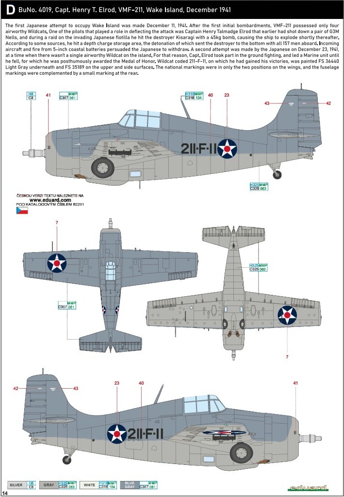 Маркировка D: Бюро/номер 4019 Капитан Henry T.Elrod VMF-211 остров Уэйк, Декабрь 1941