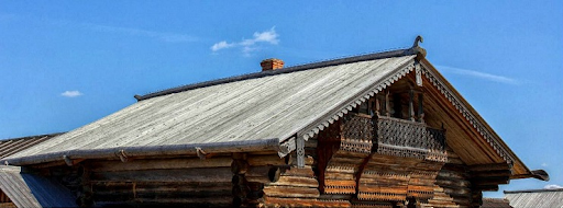 Вот как описывают устройство крыши домов тех времен: «Кровля у белых изб двускатная из тёса или дранки. Двускатные кровли самцовые с фронтонами из брёвен-самцов. На вершину кровли укладывали охлупень. Кровлю связывал продольный брус — князь (князёк) или конь (конёк). К этому брусу крепились стволы деревьев с закрючинами — курицы. На крючья курицы укладывали свесы, водостоки».