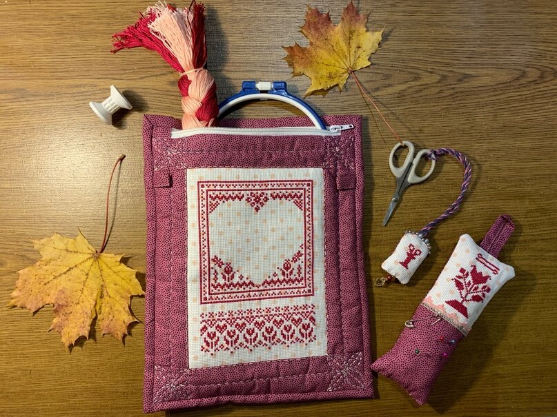 Это не мастер-класс, а как это сделала я. Вышивка крестиком «Игольница» автор Широких Наталья (http://www.instagram.com/racoonandrfox/) Подготовить все нужные инструменты и материалы: Подготовить вышивку: обработать (подклеить) с изнаночной стороны флизелином, обрезать со всех сторон, оставив по 2 см от последнего крестика. Нарезать полосы 5,5 см для окантовки вышивки. Сначала пришить боковые полосы, затем верхние и нижние, выровнять. Пригладить на сторону ткани. Собрать сэндвич: «черновая» подкладочная ткань, слимтекс 100, лицевая часть конверта, заколоть булавками или сметать. Сделать стёжку . У меня ручная стёжка Сашико (расчертила рисунок на ткани мелом и простегала нитками мулине в 3 нити. Приготовила молнию (закрепив концы, чтобы не разбежались), отрезала и пришила язычки (заглаженные в 4 сложения). Пришила к лицевой стороне кармана слоями: Собрала конверт, соеденив лицевую и заднюю часть. Окантовала бейкой с лицевой стороны, изнаночную подшила вручную. В комплект сшила игольни