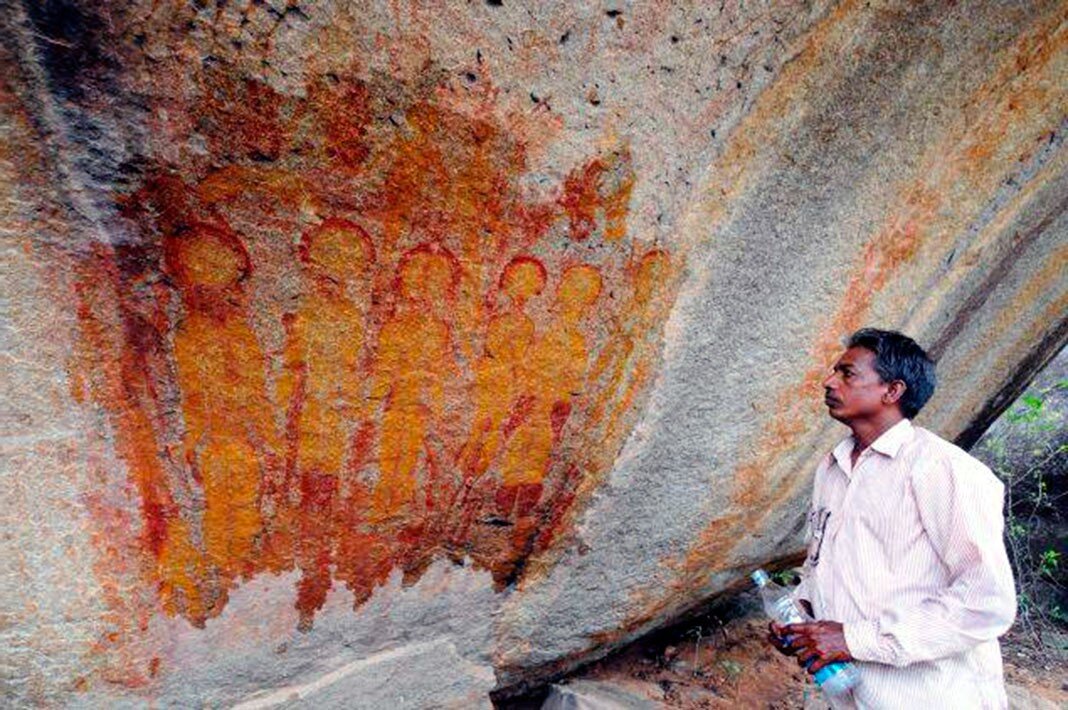 10000-летние загадки Земли наскальные рисунки – петроглифы, были обнаружены в 2014 году археологами в индийском городе Чарама, штат Чхаттисгарх, Индия. На них изображены мистические существа в странных костюмах и с предметами, похожими на оружие. Следует отметить, что существа стоят в группе неподвижно, что редко встречается в наскальных рисунках, на которых обычно изображены персонажи в действии, например, на охоте. Некоторые из археологов утверждают, что возможно на рисунках изображены инопланетяне, что подтверждает гипотезу палеоконтакта — идею о том, что Земля была посещена инопланетянами тысячи лет назад. Жители племен Чандели и Готитола, из мест где находятся пещеры, поклоняются древним «народам роэлов», которые, согласно легенде, были таинственными маленькими существами с неба, которые похищали жителей деревни . Будь то работа воображения или настоящее доказательство инопланетной жизни, эти наскальные картины, несомненно, являются захватывающим зрелищем. Источник: https://planet