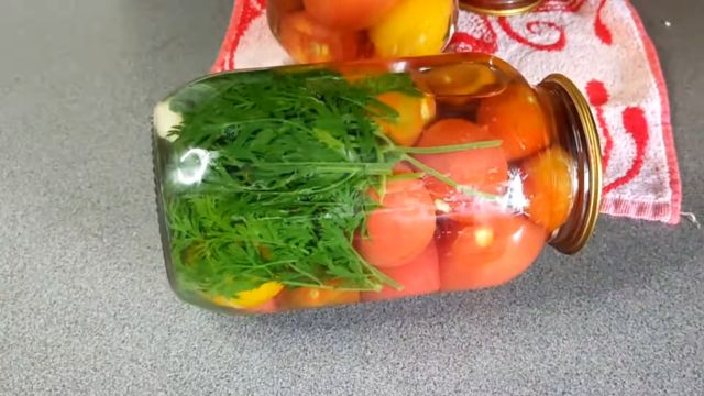 Морковная ботва — это тот секретный ингредиент, который придаст вашей заготовке тонкий аромат и легкую кислинку. Для консервации старайтесь выбирать молодые побеги. Такая заготовка хорошо хранится и в прохладном погребе, и дома при комнатной температуре. А вот открывать ее лучше не раньше Нового года, за это время помидорки хорошо настоятся и лучше раскроют свой вкус.