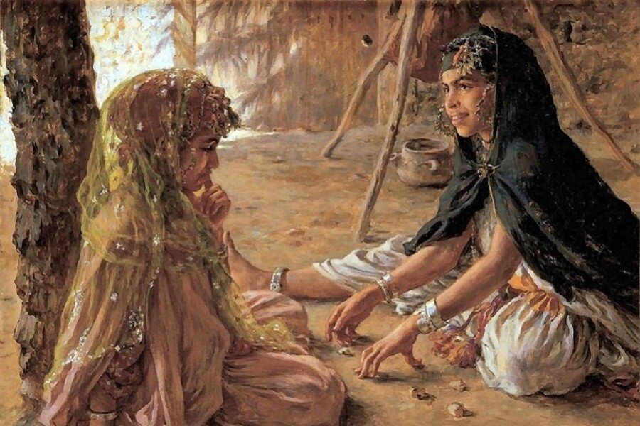 Художник Насреддин Дине. Имя его по рождению было Альфонс -Этьен Дине (1861-1929). Однажды он побывал в Бу-Саада на юге Алжира с группой энтомологов, а потом еще раз. И оказался настолько очарован Северной Африкой и ее культурой, что обратился в ислам и овладел арабским языком. В 1903 он купил дом в Бу-Саада и тут с ним случился переворот – он стал серьезно изучать ислам. В 1908-м объявил о своем переходе в ислам, и взял имя Насреддин Дине. В 1929 г. он со своей женой совершили хадж в Мекку. Как говорит история – в том же году умер. Помимо картин, он переводил на французский язык арабскую литературу. По сравнению с художниками-модернистами, такими как Анри Матисс, которые также посещали Северную Африку в начале ХХ века, картины Дине крайне консервативны. Они очень миметичны, даже этнографичны в своем подходе к своему предмету. Позже стал рисовать на религиозные темы. Понимание Дине арабской культуры отличало его от других художников-востоковедов, потому, говоря по-арабски, он смог найт