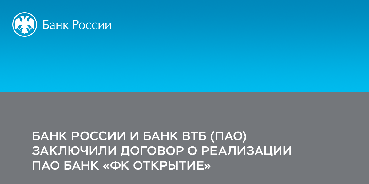 В соответствии с законом Совет директоров Банка России вправе принять решение о реализации акций ПАО Банк «ФК Открытие» по их рыночной стоимости. Требуемое для целей сделки решение также принято Наблюдательным советом Банка ВТБ (ПАО).