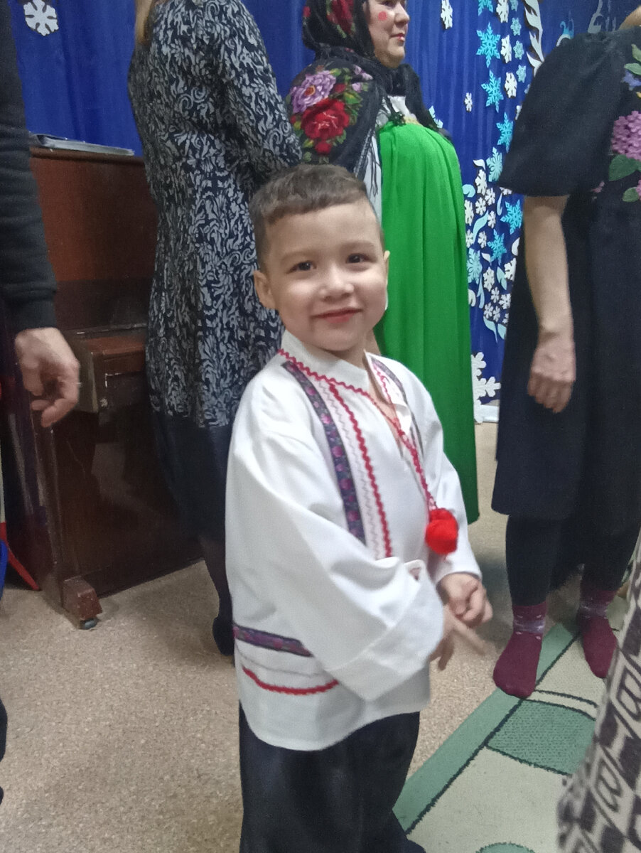 Сегодня Артёмка в садике хороводы водил. Я коротко расскажу 😊 Всё было супер. Сын весь праздник улыбался, отработал по полной программе. И танцы танцевал, и песни пел. Костюмы для мальчиков предоставил садик. Тёмке штаны большеваты, весь праздник их подтягивал, бедолага 😅 Обратила внимание, что уже не первый праздник Артёма ставят в первый ряд. Молодец, старается парень. Раньше терпеть не мог всякие мероприятия. Праздник очень понравился. И сценарий, и декорации. Только со стихами Деду Морозу провал вышел. В сценарий их не включили, видимо и так вышло много. После праздника детки побежали наперебой рассказывать. Под шум и крик других желающих. Так что видео со стихом у меня не вышло. Других слышно лучше, чем сына 😔 Но, он рассказывал, честно говорю 😅 Вон, даже на руках посидел. С папой хоровод водил (просил же папу на утренник, вот с ним и водил). В общем, смотрите фото 🥰